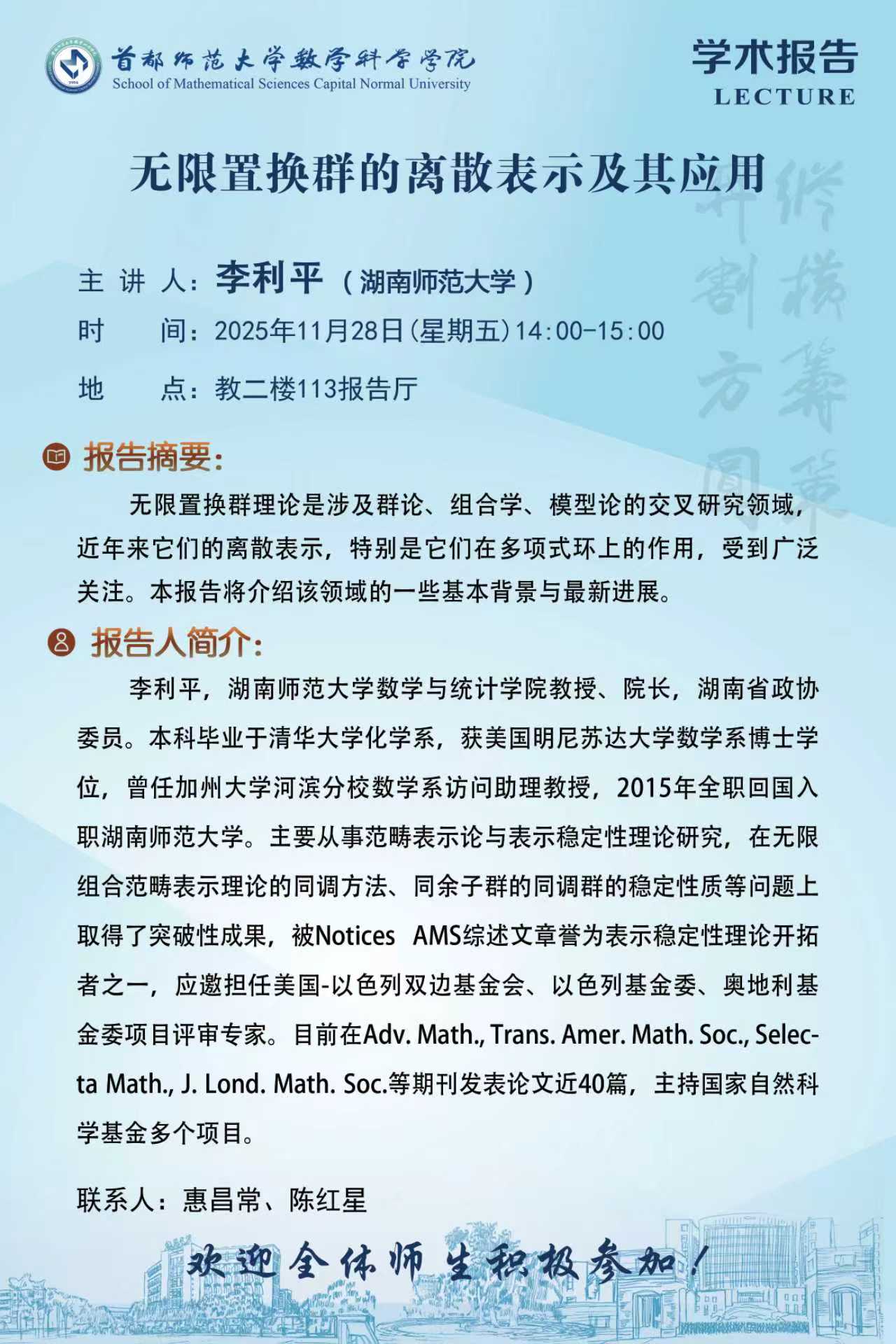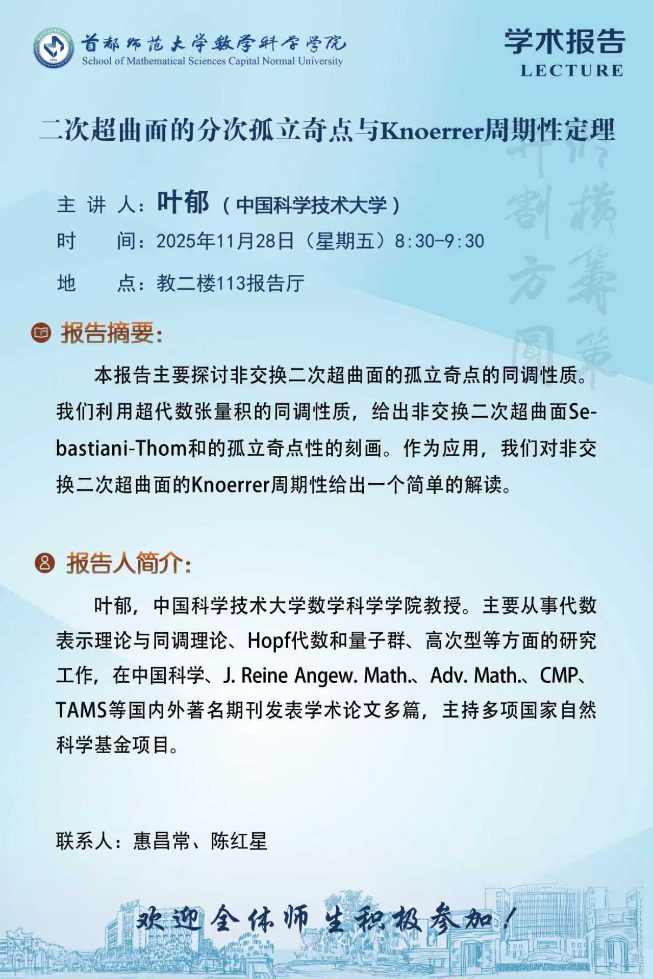 首都师范大学代数与表示论研究小组 Nov. 26, 2025 |